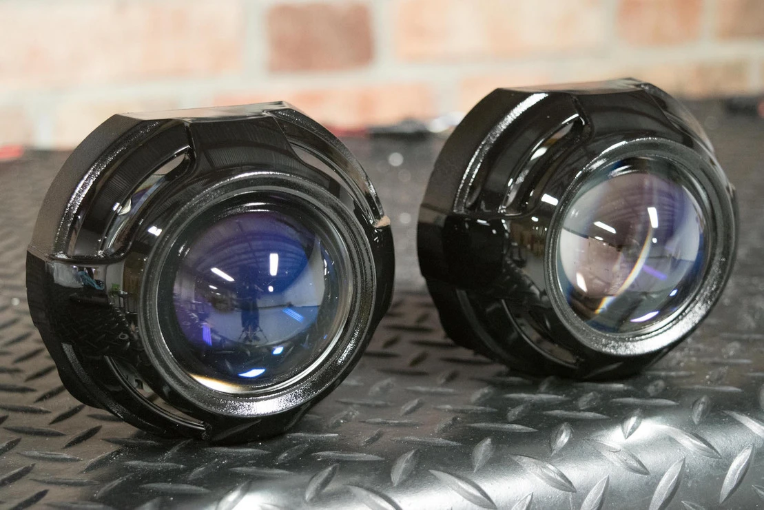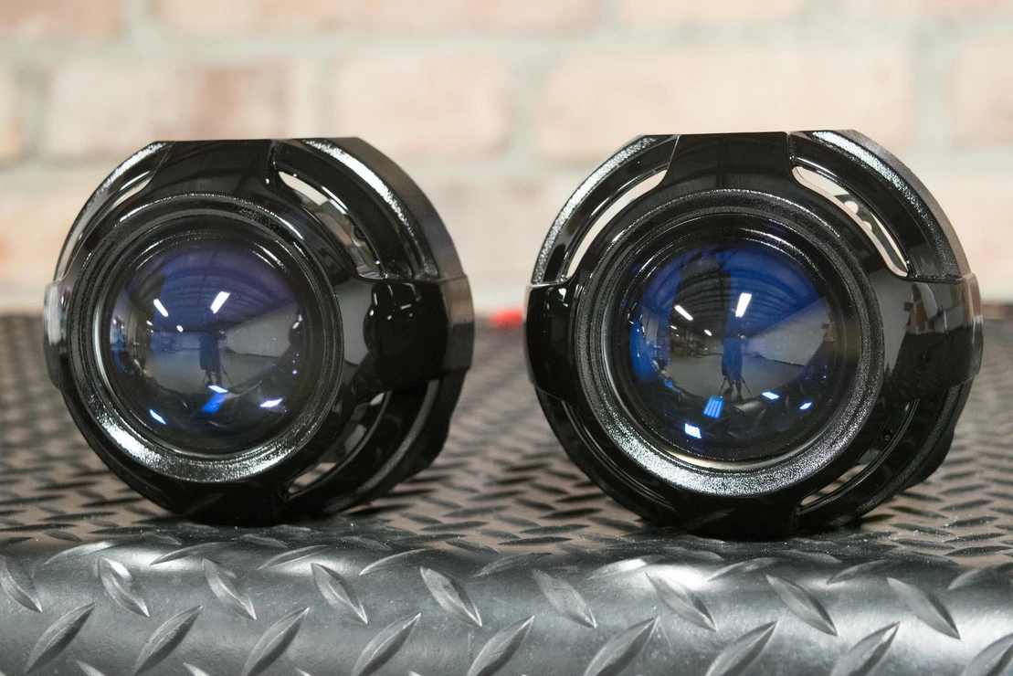 Please note that trimming shrouds is a common task when retrofitting. While the Apollo 2.0 is a easy fit over the projectors, the outside edges may need to be adjusted to fit within the geometry of your headlight reflectors.