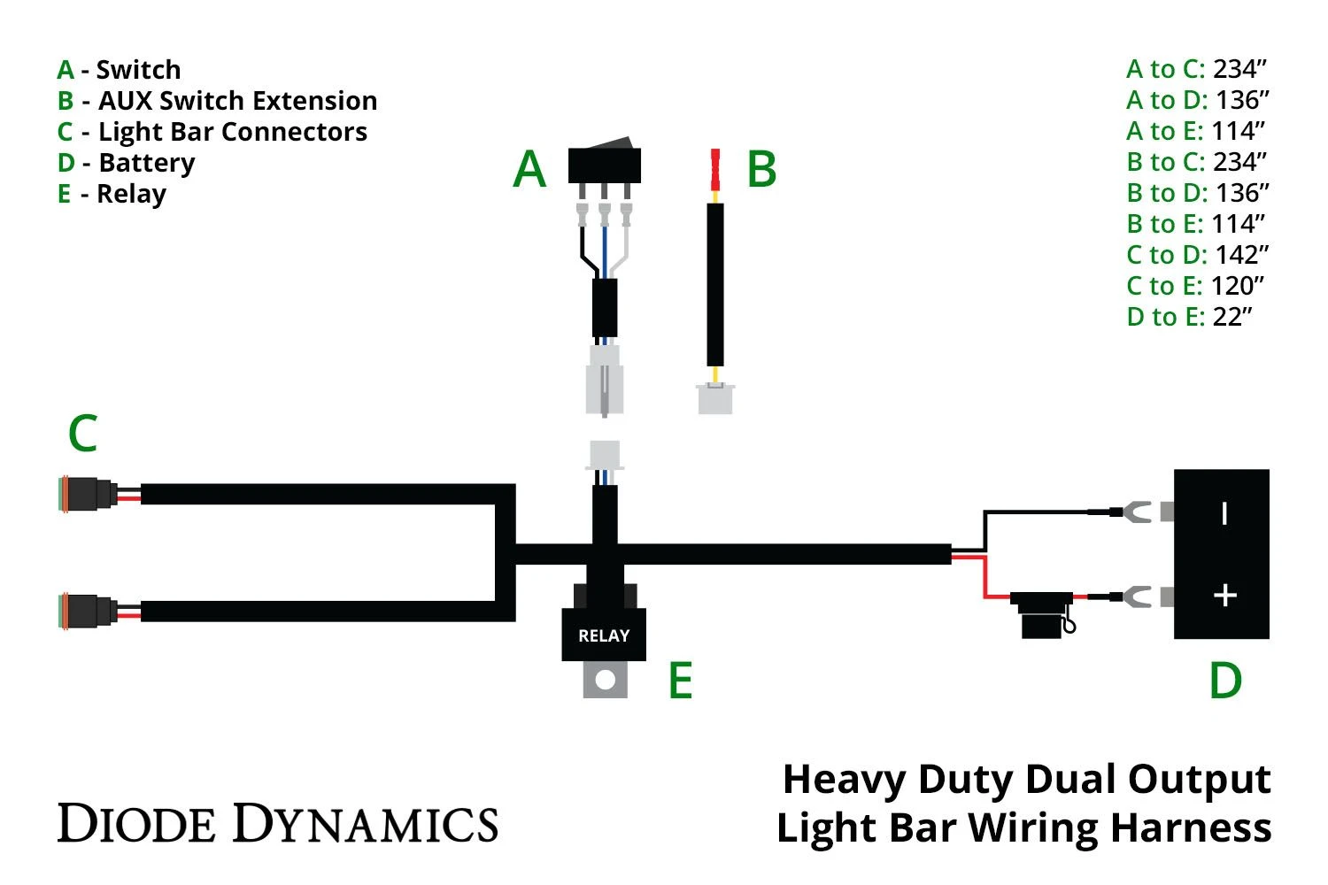 Stage Series. This harness is intended to be used with our Stage Series light bars and pods without backlight functionality. This harness connects directly to your vehicle’s battery and allows you to power your offroad lighting. It features a two-way toggle switch, and uses high capacity 14AWG wiring and Deutsch DT connectors for simple plug-and-play installation.