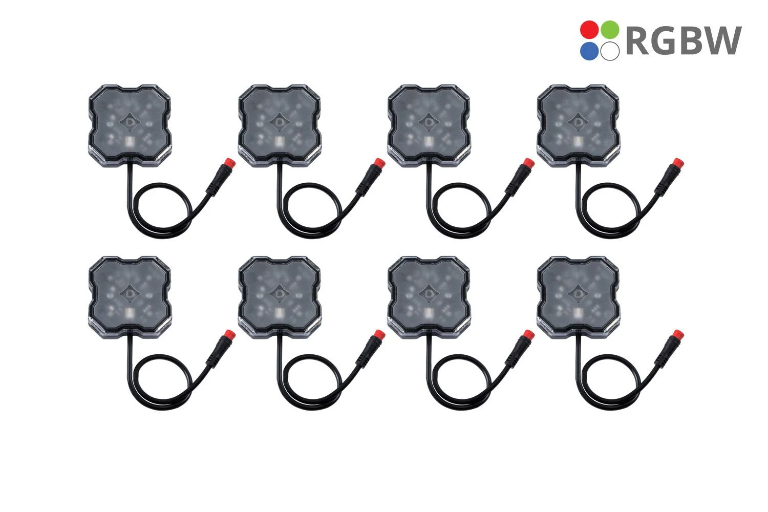 Multicolor plus White. With four high-intensity RGBW LED emitters, the Diode Dynamics Rock Light provides plenty of output in any color you can think of, paired with our RGBW remote or RGBW Bluetooth controller and app. The diffused optical feature of the lens provides excellent integration of colors. And unlike other multicolor lights, the extra white chip means that these will light up in a bright, pure white color when you want to maximize output. Want to show off? Use your controller to start a pattern, strobe, fade, or control the brightness. The best of both worlds! Our RGBW rock lights pack a punch, but if you are looking for the most output possible, check out our single-color rock lights!
