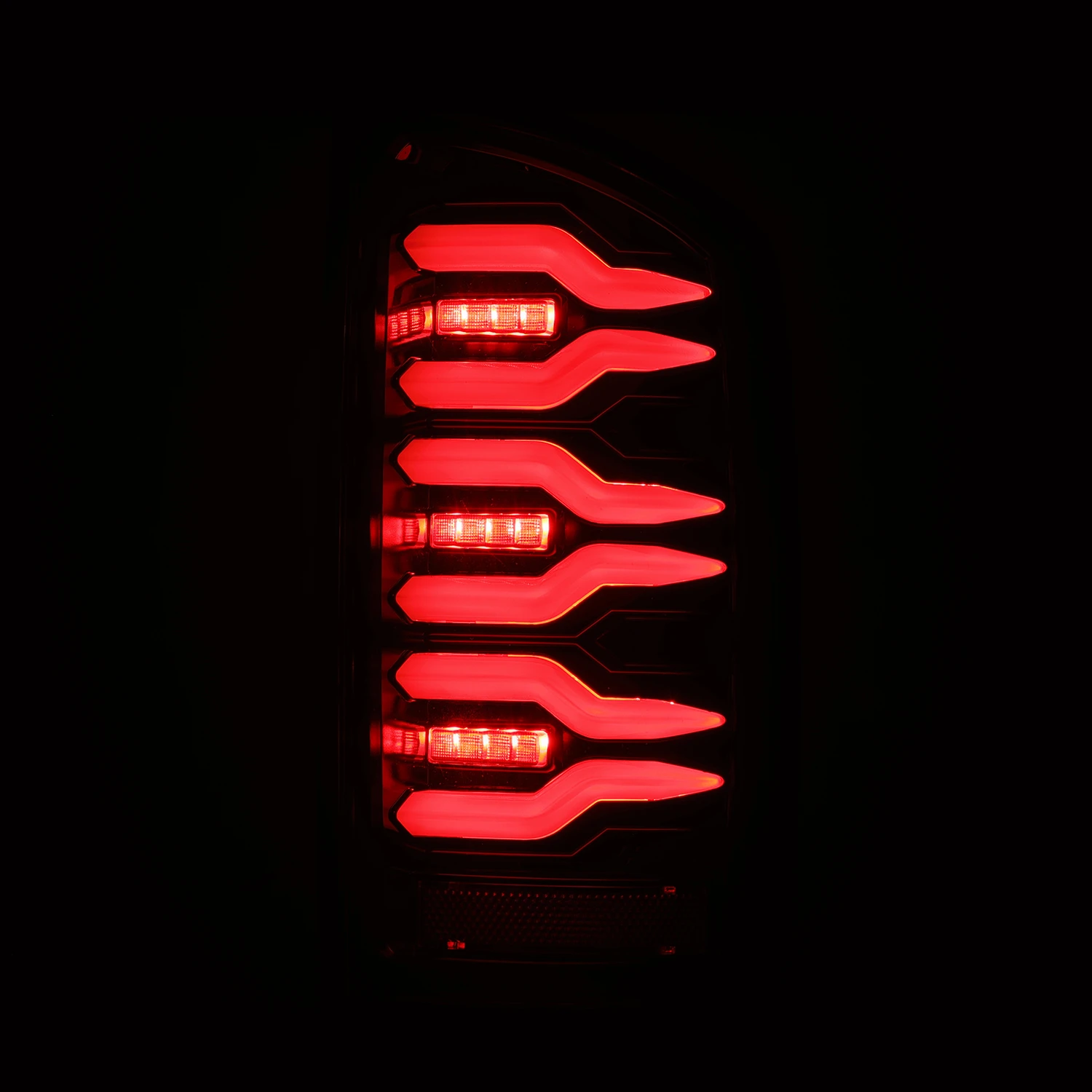 These 3rd gen Dodge Ram LUXX-series LED tail lights are with six switchable LED tubes with red LED as parking light, brake light and amber LED as sequential turn signal lights. In between the light tubes, we add diffusers lens with switchable LED for brake light and sequential turn signal light in order to output more obvious indication during daytime. Our LUXX-series LED tail lights come with our signature activation light feature, which is a sequence when you turn on your parking light, and gives your Ram an unique style.