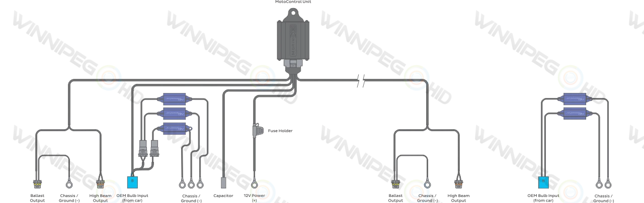 Advanced: The third generation MotoControl 8-Pin Relay has a tiny built-in capacitor that stores and releases it’s charge between mode changes. So even if there’s a short gap between the low and high beam signals from your car, your HID’s will run